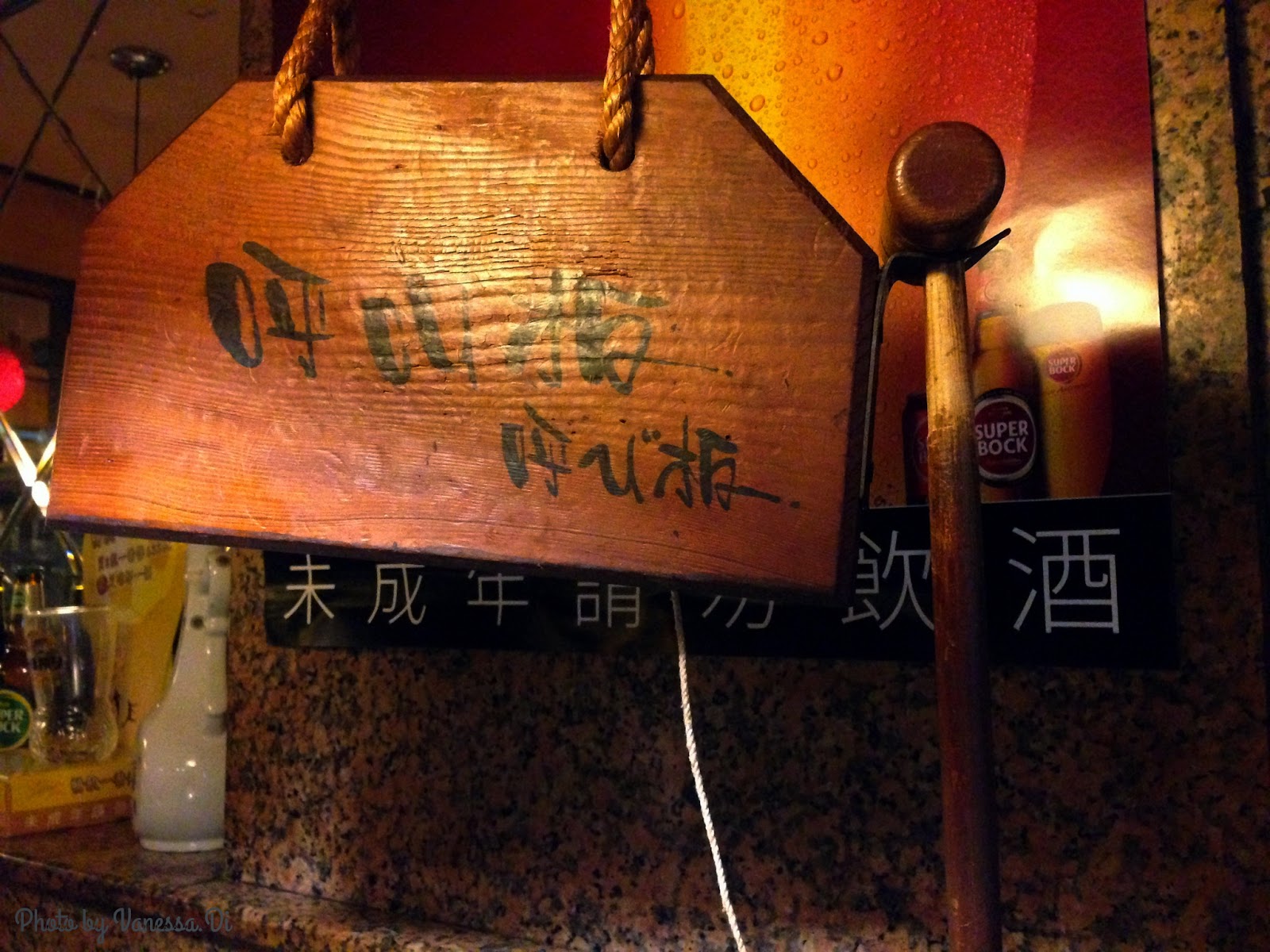 | 呼叫店員請敲呼叫板,這也是山喜屋多年來的傳統及特色啊,不用害怕人多吵雜時還要大聲吶喊店員啊! |